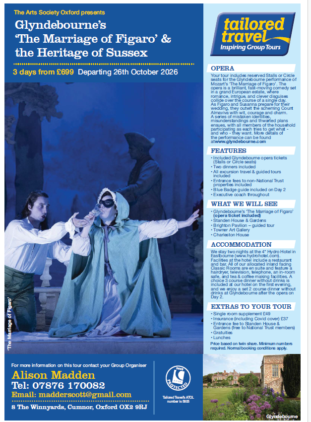 Monday 26th to Wednesday 28th October 2026 – an organised trip to Brighton, Charleston and to see Le nozze di Figaro at Glyndebourne.